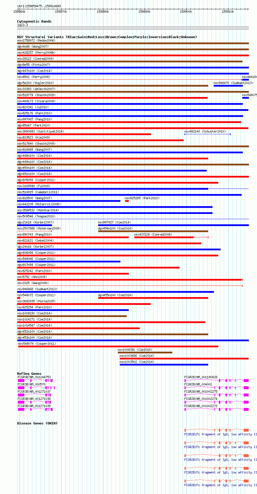 | | Variant Type | CNV gain | | Copy Number | | | Allele State | | | Allele Origin | | | Probe Count | | | Validation Flag | | | Merged Status | M | | Merged Variants | dgv453n100 | | Supporting Variants | nssv3495173 | | Samples | | | Known Genes | FCGR2B, FCGR3B | | Method | SNP array | | Analysis | Affymetrix SNP array copy number analysis | | Platform | Affymetrix SNP Array 6.0 | | Comments | | | Reference | Coe_et_al_2014 | | Pubmed ID | 25217958 | | Accession Number(s) | nsv1013749
