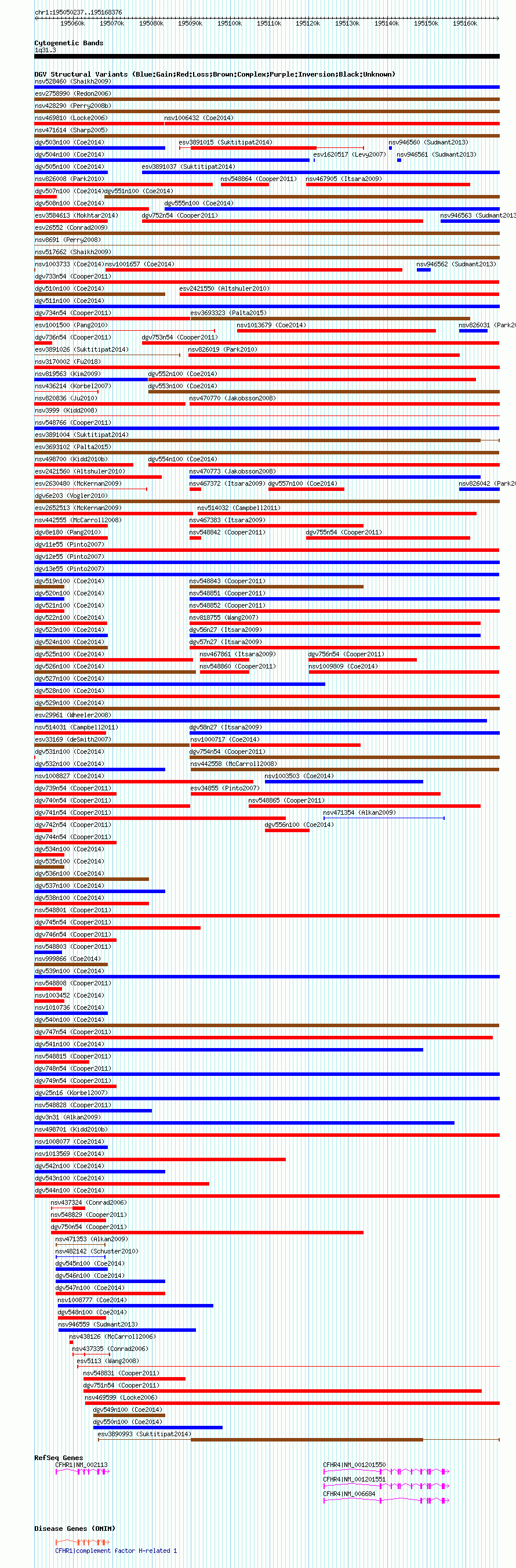 | | Variant Type | CNV gain+loss | | Copy Number | | | Allele State | | | Allele Origin | | | Probe Count | | | Validation Flag | | | Merged Status | M | | Merged Variants | dgv540n100 | | Supporting Variants | nssv3494709, nssv3492063, nssv3499927, nssv3490053, nssv3495695, nssv3485425, nssv3499282 | | Samples | | | Known Genes | CFHR1, CFHR4 | | Method | SNP array | | Analysis | Affymetrix SNP array copy number analysis | | Platform | Affymetrix SNP Array 6.0 | | Comments | | | Reference | Coe_et_al_2014 | | Pubmed ID | 25217958 | | Accession Number(s) | nsv1013866