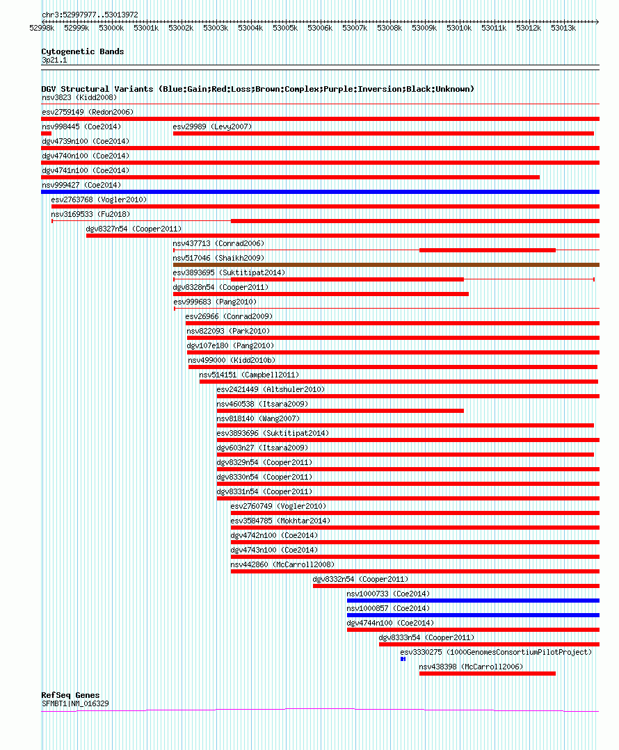 Variant DetailsVariant: nsv1013928| Internal ID | 19103147 | | Landmark | | | Location Information | | | Cytoband | 3p21.1 | | Allele length | | Assembly | Allele length | | hg38 | 15996 | | hg19 | 15996 | | hg18 | 15996 |