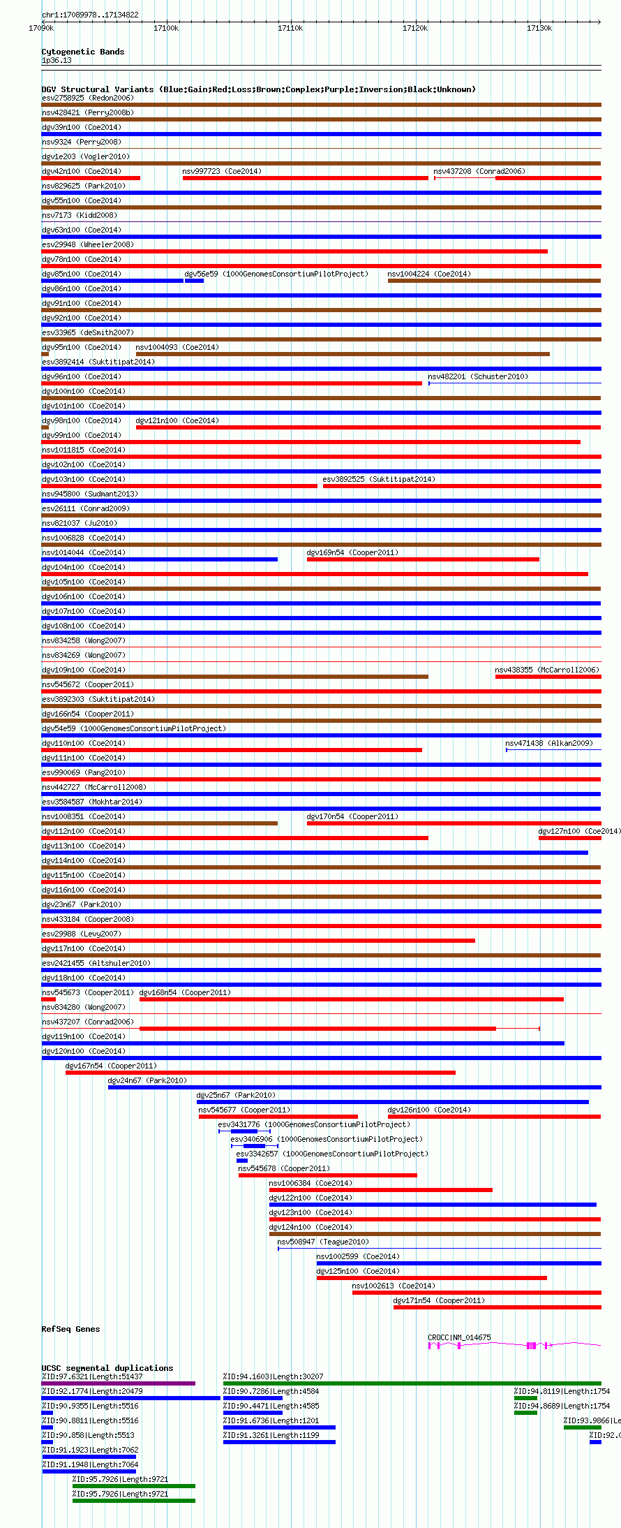 Variant DetailsVariant: nsv1014213| Internal ID | 18756746 | | Landmark | | | Location Information | | | Cytoband | 1p36.13 | | Allele length | | Assembly | Allele length | | hg38 | 44845 | | hg19 | 44845 | | hg18 | 44845 |
