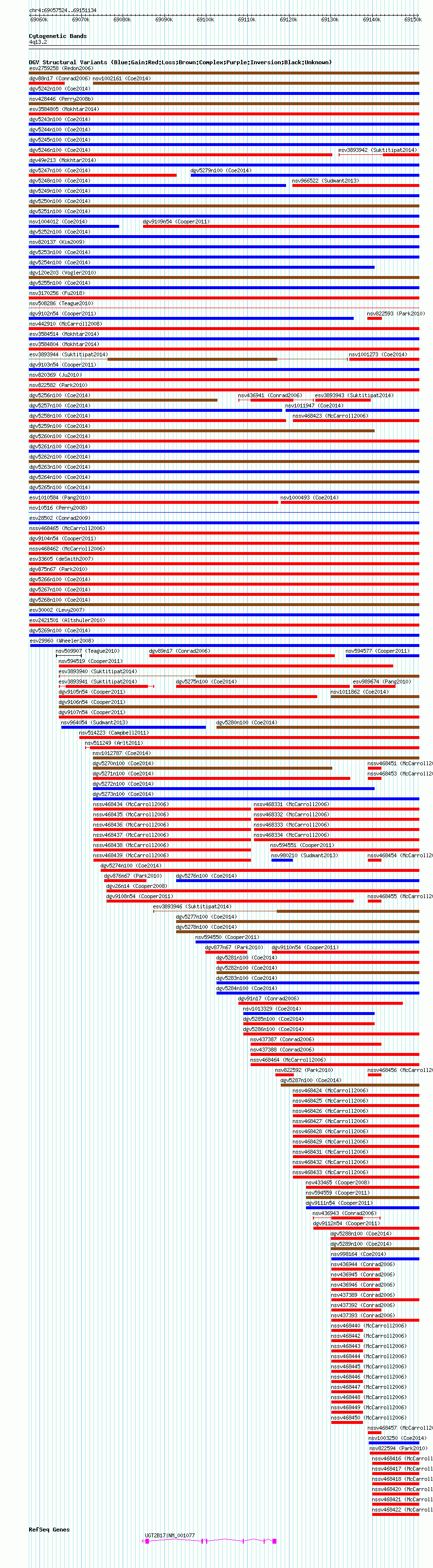 Variant DetailsVariant: nsv1014329| Internal ID | 19103550 | | Landmark | | | Location Information | | | Cytoband | 4q13.2 | | Allele length | | Assembly | Allele length | | hg38 | 93611 | | hg19 | 93611 | | hg18 | 93611 |
