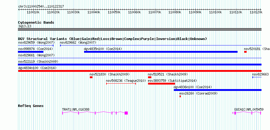 Variant DetailsVariant: nsv1014353| Internal ID | 19103572 | | Landmark | | | Location Information | | | Cytoband | 3q13.13 | | Allele length | | Assembly | Allele length | | hg38 | 119778 | | hg19 | 119778 | | hg18 | 119778 |