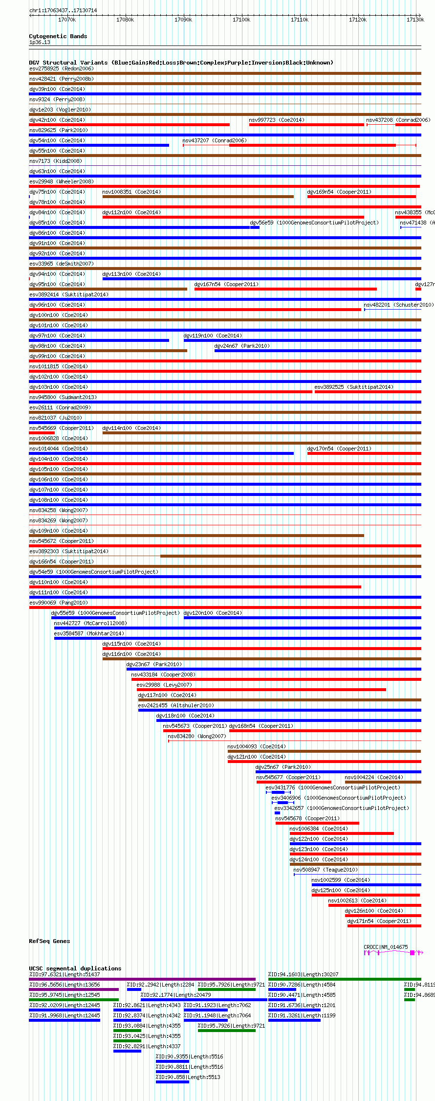 Variant DetailsVariant: nsv1014380| Internal ID | 18756914 | | Landmark | | | Location Information | | | Cytoband | 1p36.13 | | Allele length | | Assembly | Allele length | | hg38 | 67278 | | hg19 | 67278 | | hg18 | 67278 |