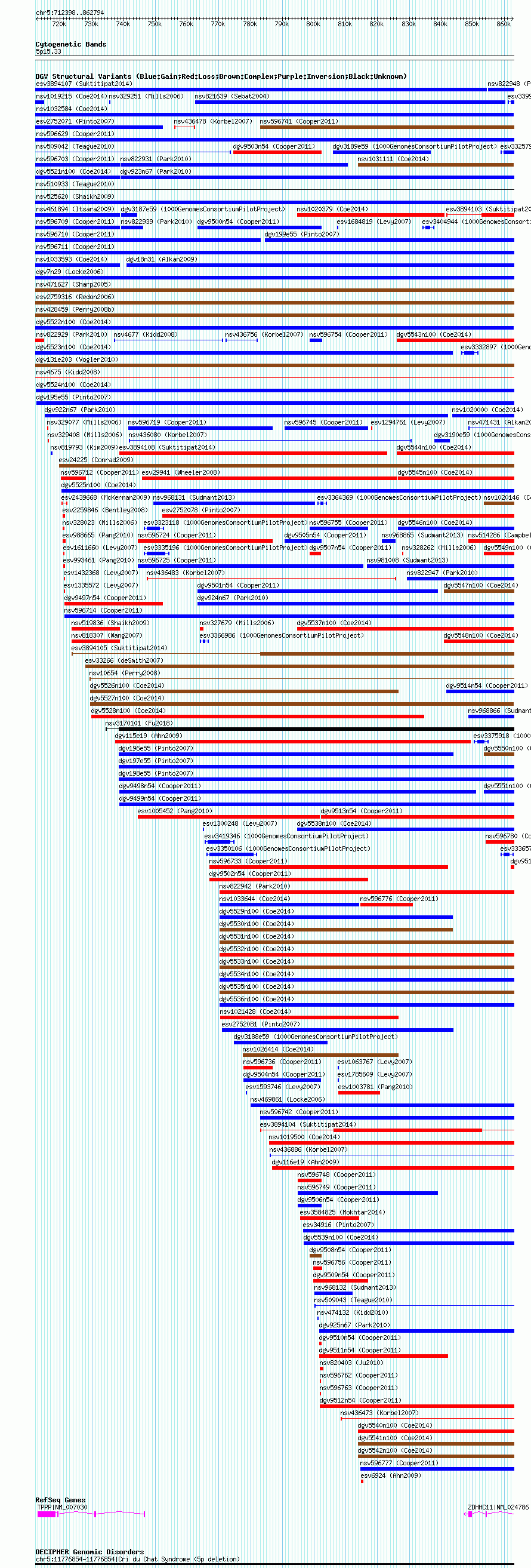 Variant DetailsVariant: nsv1015226| Internal ID | 19104443 | | Landmark | | | Location Information | | | Cytoband | 5p15.33 | | Allele length | | Assembly | Allele length | | hg38 | 150397 | | hg19 | 150397 | | hg18 | 150397 |