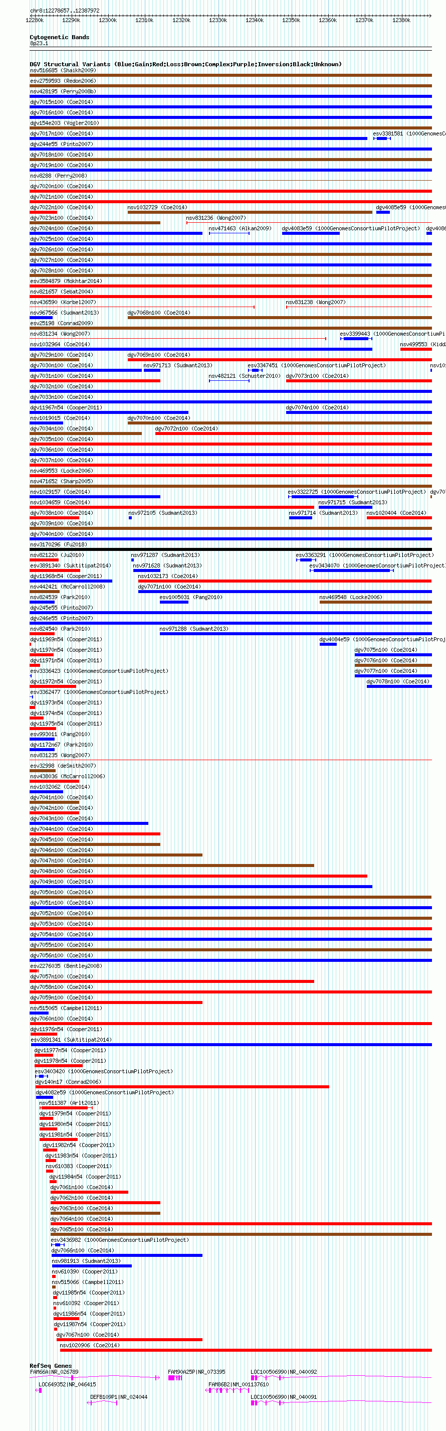 Variant DetailsVariant: nsv1015900| Internal ID | 19105118 | | Landmark | | | Location Information | | | Cytoband | 8p23.1 | | Allele length | | Assembly | Allele length | | hg38 | 109316 | | hg19 | 109316 | | hg18 | 109316 |