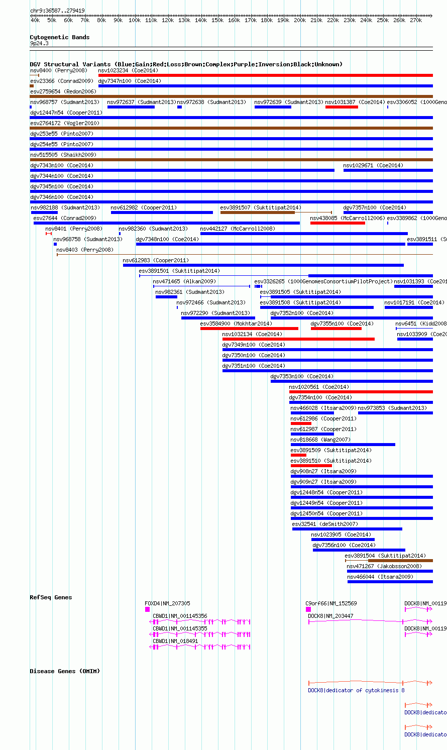 | Known Genes | C9orf66, CBWD1, DOCK8, FOXD4 |