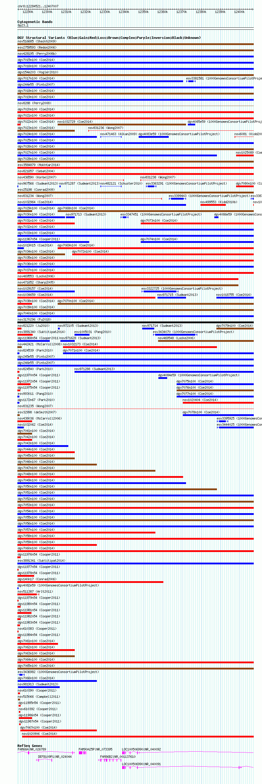 Variant DetailsVariant: nsv1016333| Internal ID | 19105552 | | Landmark | | | Location Information | | | Cytoband | 8p23.1 | | Allele length | | Assembly | Allele length | | hg38 | 122487 | | hg19 | 122487 | | hg18 | 122487 |