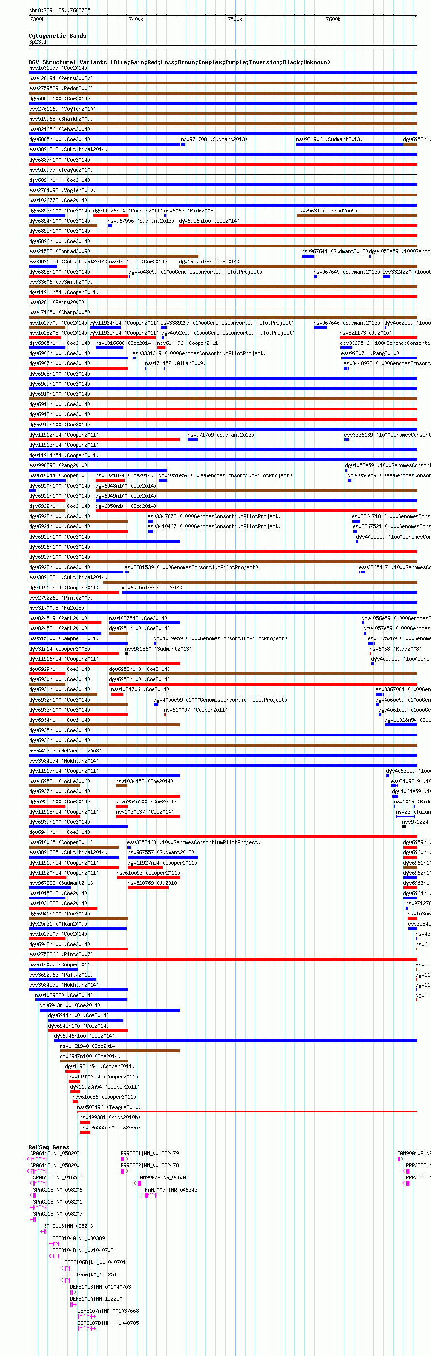 Variant DetailsVariant: nsv1016547| Internal ID | 19105766 | | Landmark | | | Location Information | | | Cytoband | 8p23.1 | | Allele length | | Assembly | Allele length | | hg18 | 392591 |