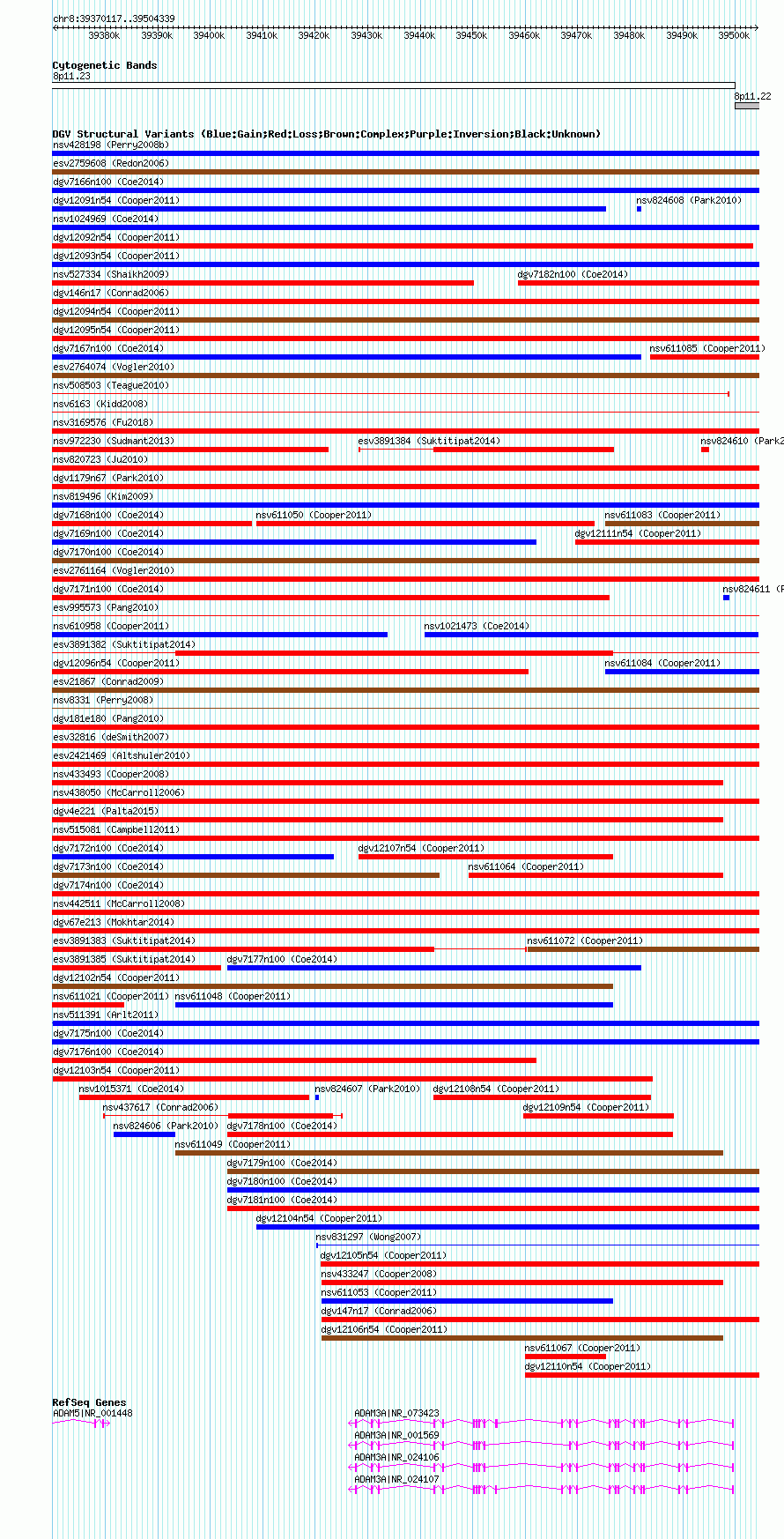 Variant DetailsVariant: nsv1016650| Internal ID | 19105867 | | Landmark | | | Location Information | | | Cytoband | 8p11.22 | | Allele length | | Assembly | Allele length | | hg38 | 134223 | | hg19 | 134223 | | hg18 | 134223 |