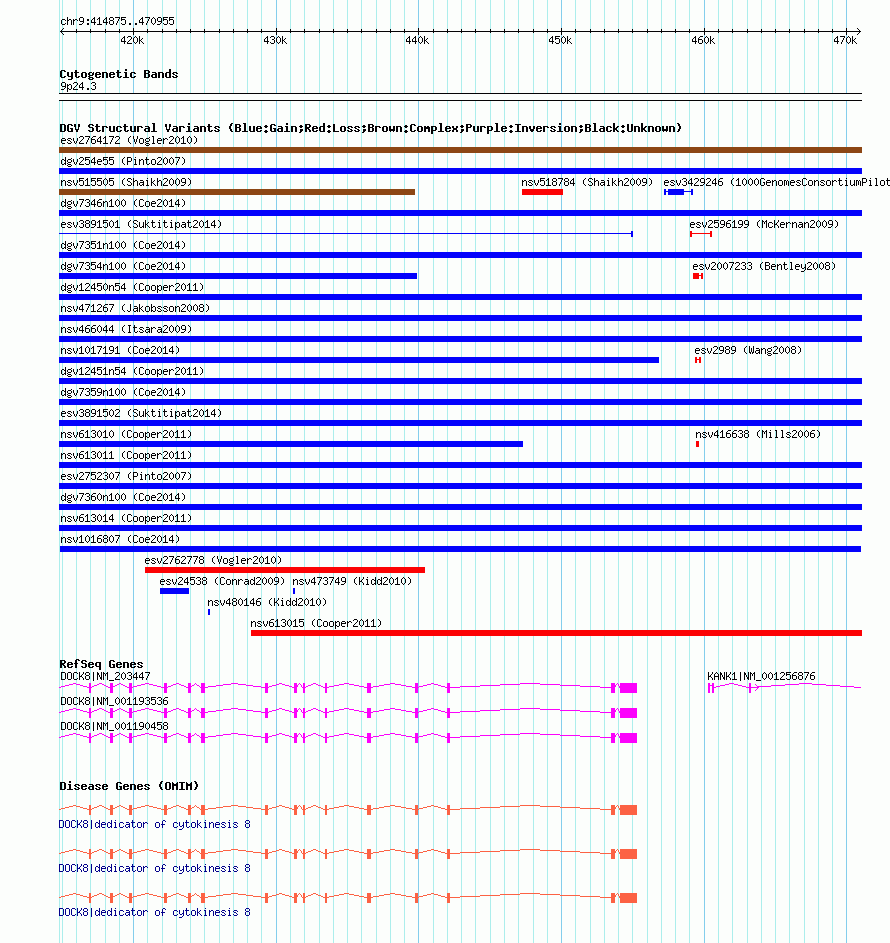 | | Variant Type | CNV gain | | Copy Number | | | Allele State | | | Allele Origin | | | Probe Count | | | Validation Flag | | | Merged Status | M | | Merged Variants | | | Supporting Variants | nssv3691022 | | Samples | | | Known Genes | DOCK8, KANK1 | | Method | SNP array | | Analysis | Affymetrix SNP array copy number analysis | | Platform | Affymetrix SNP Array 6.0 | | Comments | | | Reference | Coe_et_al_2014 | | Pubmed ID | 25217958 | | Accession Number(s) | nsv1016807