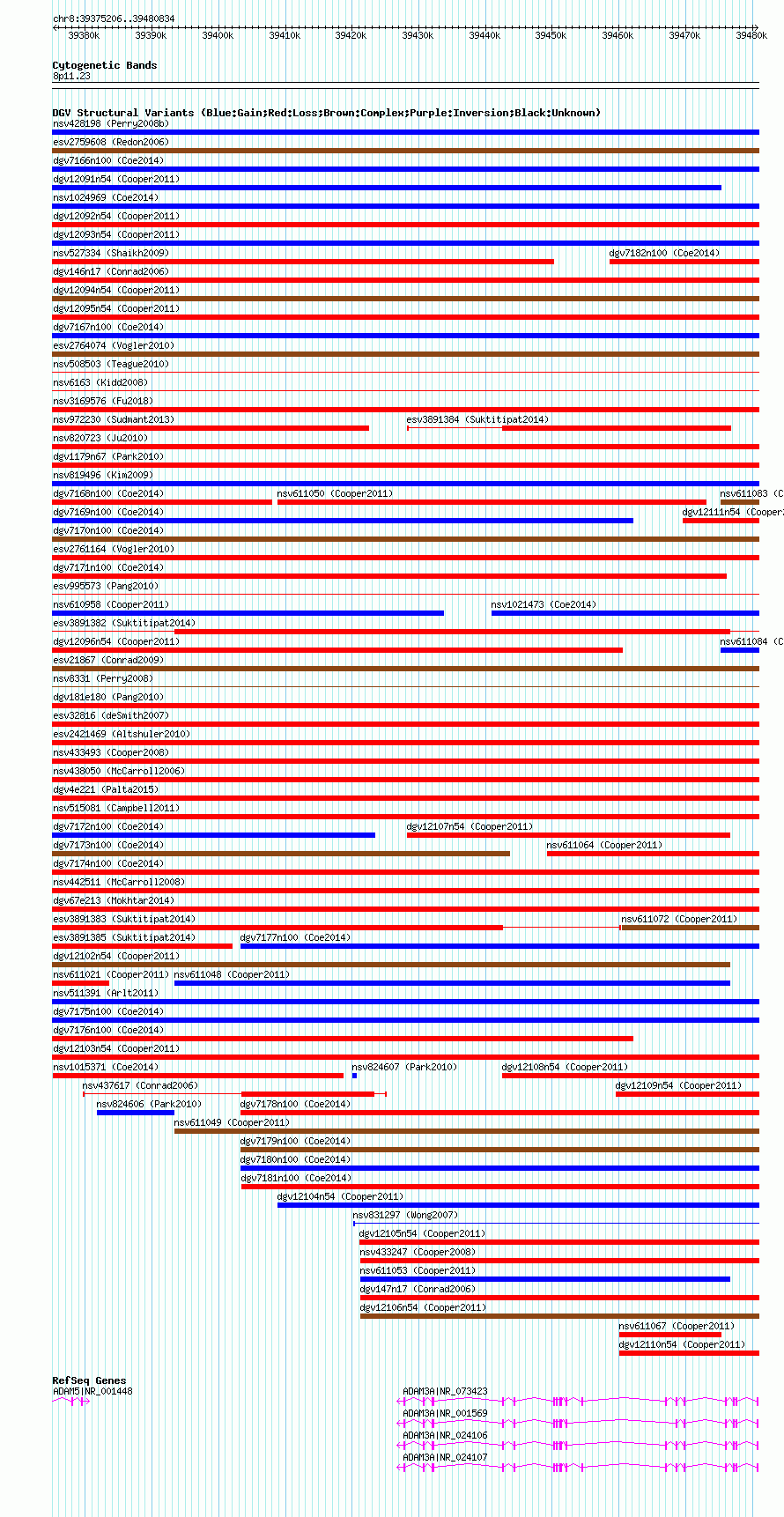 Variant DetailsVariant: nsv1017087| Internal ID | 19106304 | | Landmark | | | Location Information | | | Cytoband | 8p11.22 | | Allele length | | Assembly | Allele length | | hg38 | 105629 | | hg19 | 105629 | | hg18 | 105629 |