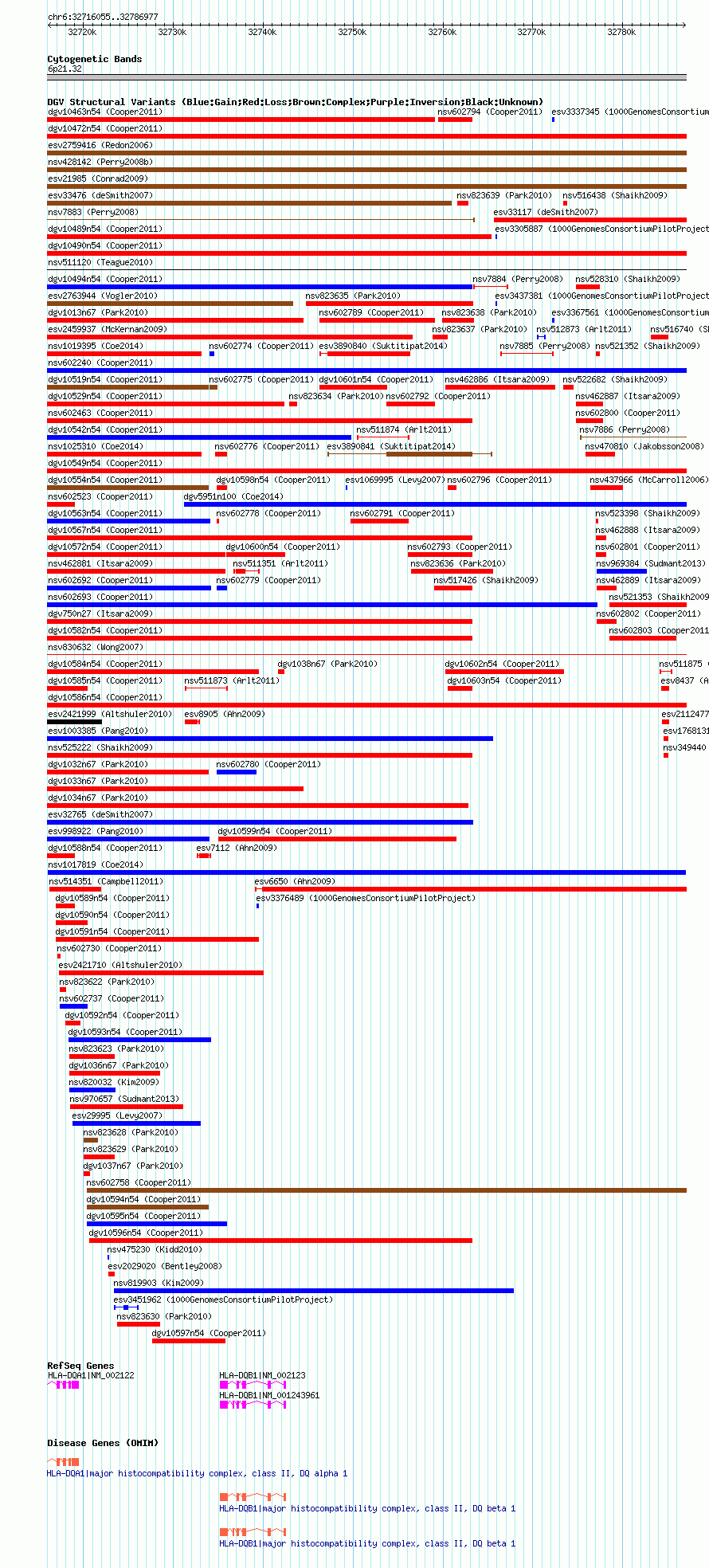Variant DetailsVariant: nsv1017819| Internal ID | 19107036 | | Landmark | | | Location Information | | | Cytoband | 6p21.32 | | Allele length | | Assembly | Allele length | | hg38 | 70923 | | hg19 | 70923 | | hg18 | 70923 |