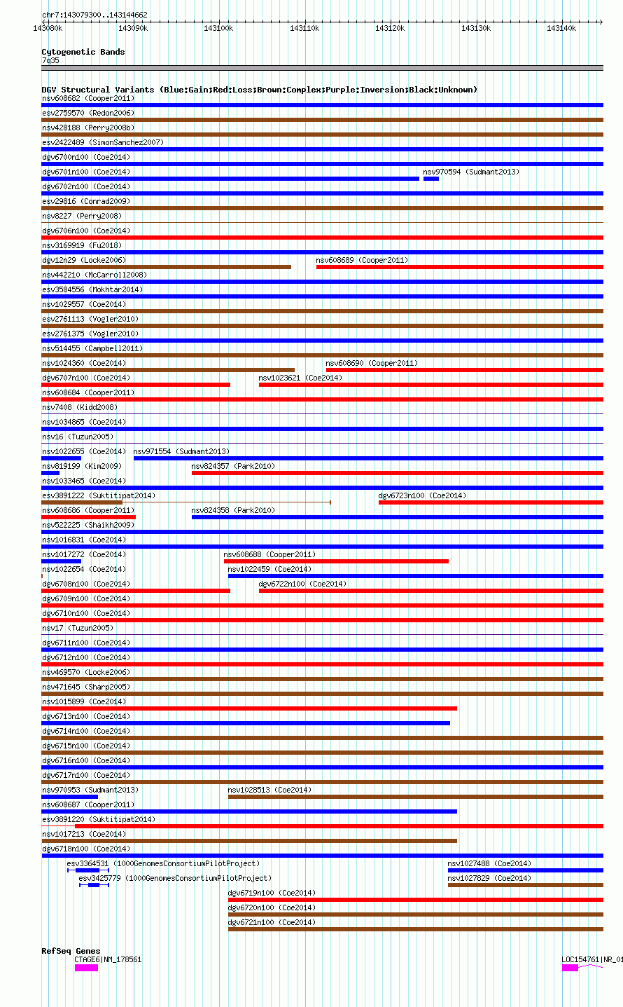 Variant DetailsVariant: nsv1017891| Internal ID | 19107108 | | Landmark | | | Location Information | | | Cytoband | 7q35 | | Allele length | | Assembly | Allele length | | hg38 | 65363 | | hg19 | 65363 | | hg18 | 65363 |