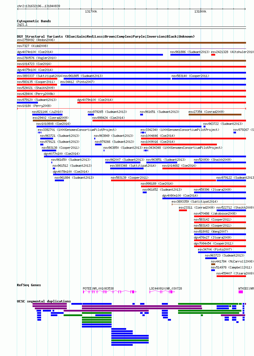 Variant DetailsVariant: nsv10180 | Internal ID | 15498457 | | Landmark | | | Location Information | | | Cytoband | 2q21.1 | | Allele length | | Assembly | Allele length | | hg38 | 208644 | | hg19 | 208644 | | hg18 | 208644 | | hg17 | 208644 |