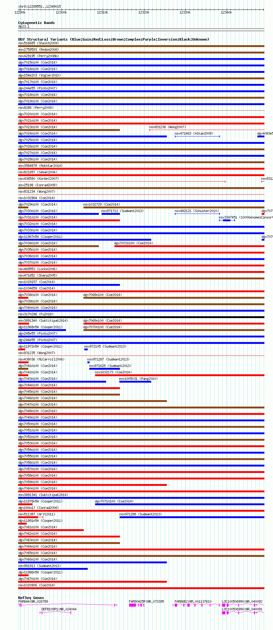 Variant DetailsVariant: nsv1018401| Internal ID | 19107618 | | Landmark | | | Location Information | | | Cytoband | 8p23.1 | | Allele length | | Assembly | Allele length | | hg38 | 59465 | | hg19 | 59465 | | hg18 | 59465 |