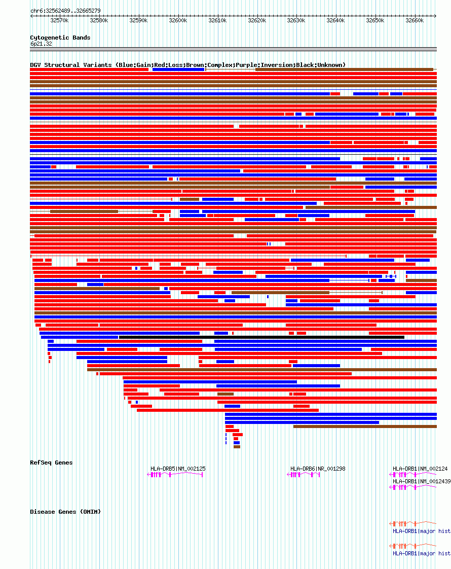 Variant DetailsVariant: nsv1018442| Internal ID | 19107659 | | Landmark | | | Location Information | | | Cytoband | 6p21.32 | | Allele length | | Assembly | Allele length | | hg38 | 102791 | | hg19 | 102791 | | hg18 | 102791 |