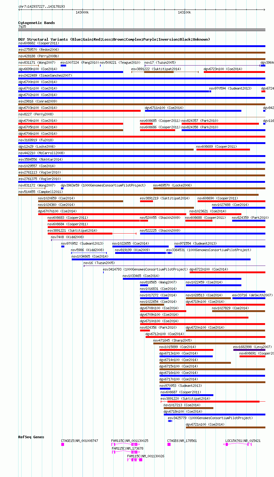 Variant DetailsVariant: nsv1018780| Internal ID | 19107997 | | Landmark | | | Location Information | | | Cytoband | 7q35 | | Allele length | | Assembly | Allele length | | hg38 | 320156 | | hg19 | 320156 | | hg18 | 240967 |