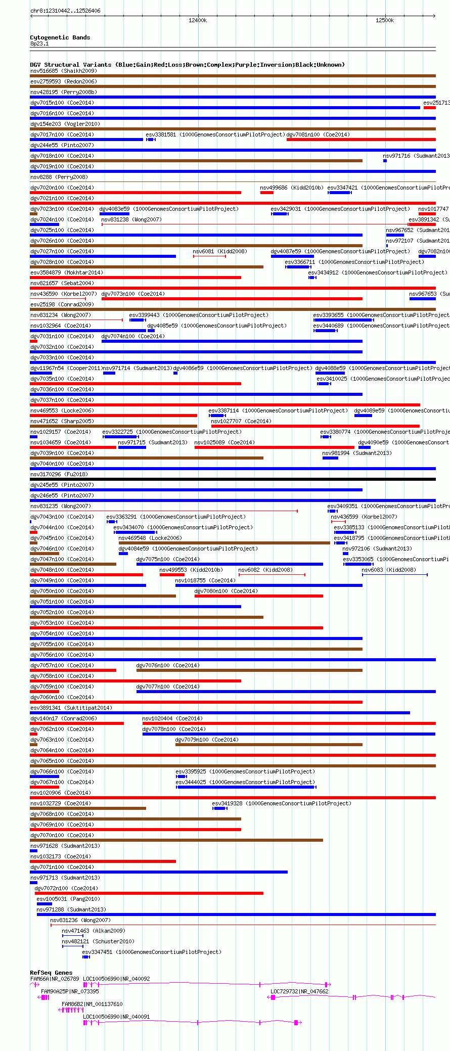 Variant DetailsVariant: nsv1018824| Internal ID | 19108041 | | Landmark | | | Location Information | | | Cytoband | 8p23.1 | | Allele length | | Assembly | Allele length | | hg38 | 215965 | | hg19 | 215965 | | hg18 | 215965 |