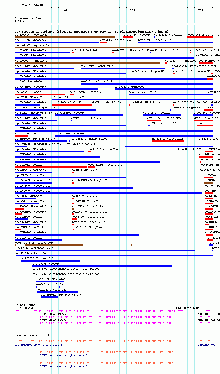 Variant DetailsVariant: nsv1018835| Internal ID | 19108052 | | Landmark | | | Location Information | | | Cytoband | 9p24.3 | | Allele length | | Assembly | Allele length | | hg38 | 290907 | | hg19 | 290907 | | hg18 | 290907 |
