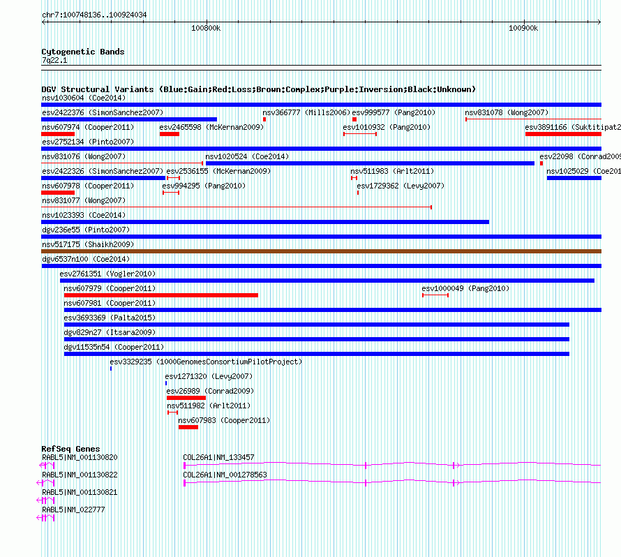 Variant DetailsVariant: nsv1019056| Internal ID | 19108273 | | Landmark | | | Location Information | | | Cytoband | 7q22.1 | | Allele length | | Assembly | Allele length | | hg38 | 175899 | | hg19 | 175899 | | hg18 | 175899 |