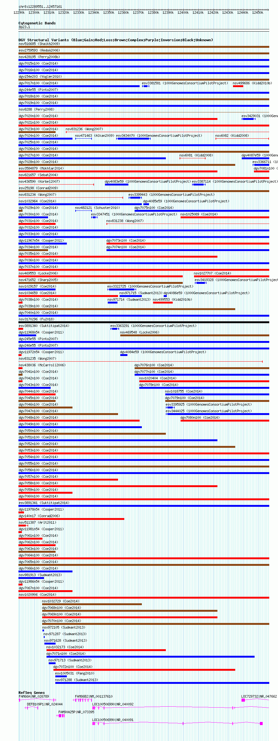 Variant DetailsVariant: nsv1019116| Internal ID | 19108334 | | Landmark | | | Location Information | | | Cytoband | 8p23.1 | | Allele length | | Assembly | Allele length | | hg38 | 167611 | | hg19 | 167611 | | hg18 | 167611 |