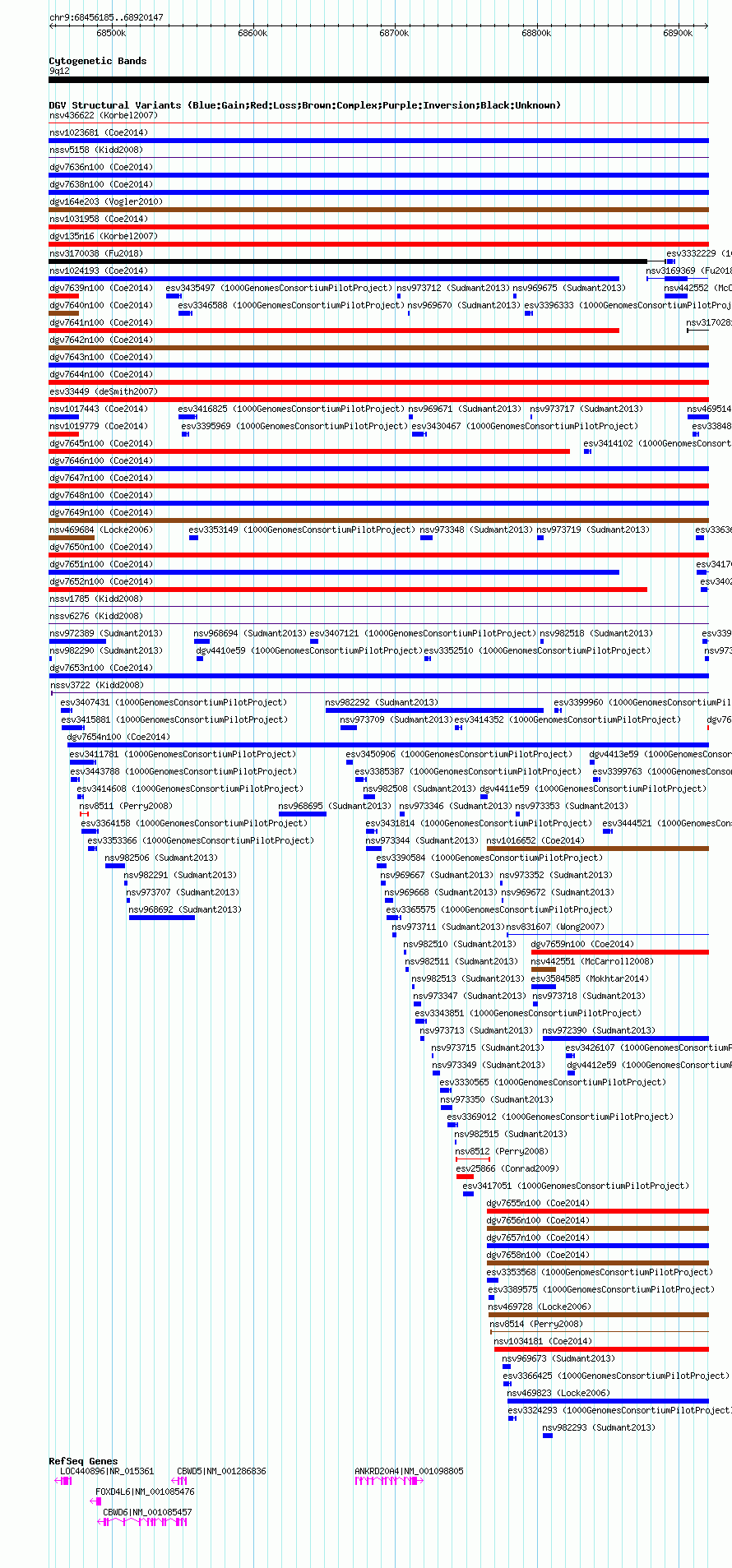 Variant DetailsVariant: nsv1019181| Internal ID | 19108399 | | Landmark | | | Location Information | | | Cytoband | 9q12 | | Allele length | | Assembly | Allele length | | hg19 | 463963 | | hg18 | 463963 |