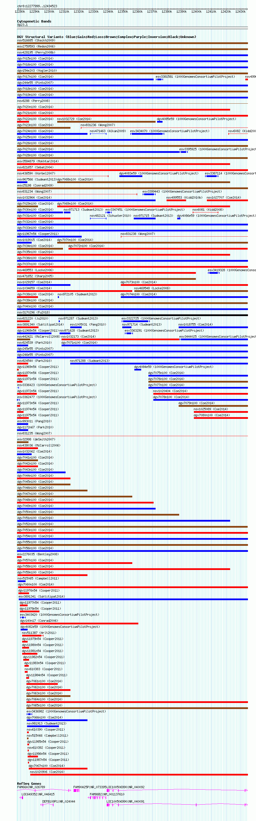 Variant DetailsVariant: nsv1019339| Internal ID | 19108557 | | Landmark | | | Location Information | | | Cytoband | 8p23.1 | | Allele length | | Assembly | Allele length | | hg38 | 156525 | | hg19 | 156525 | | hg18 | 156525 |