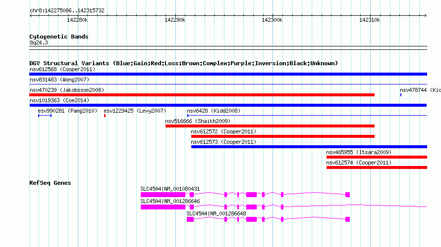 Variant DetailsVariant: nsv1019363| Internal ID | 19108581 | | Landmark | | | Location Information | | | Cytoband | 8q24.3 | | Allele length | | Assembly | Allele length | | hg38 | 40647 | | hg19 | 40647 | | hg18 | 40647 |