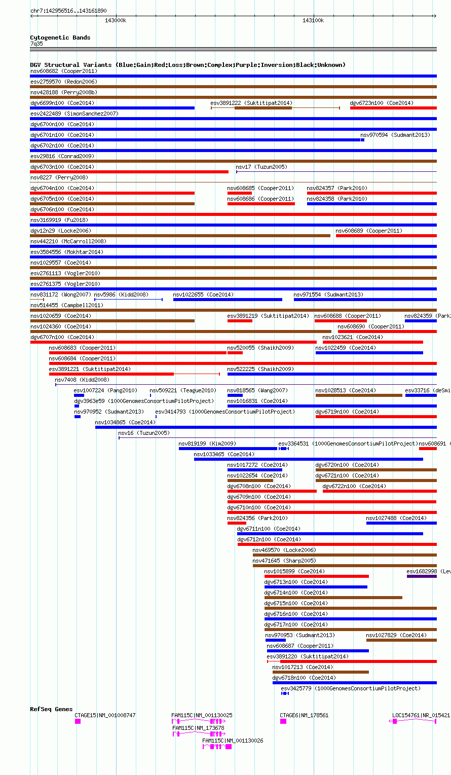 Variant DetailsVariant: nsv1019550| Internal ID | 19108768 | | Landmark | | | Location Information | | | Cytoband | 7q35 | | Allele length | | Assembly | Allele length | | hg38 | 284564 | | hg19 | 284564 | | hg18 | 205375 |