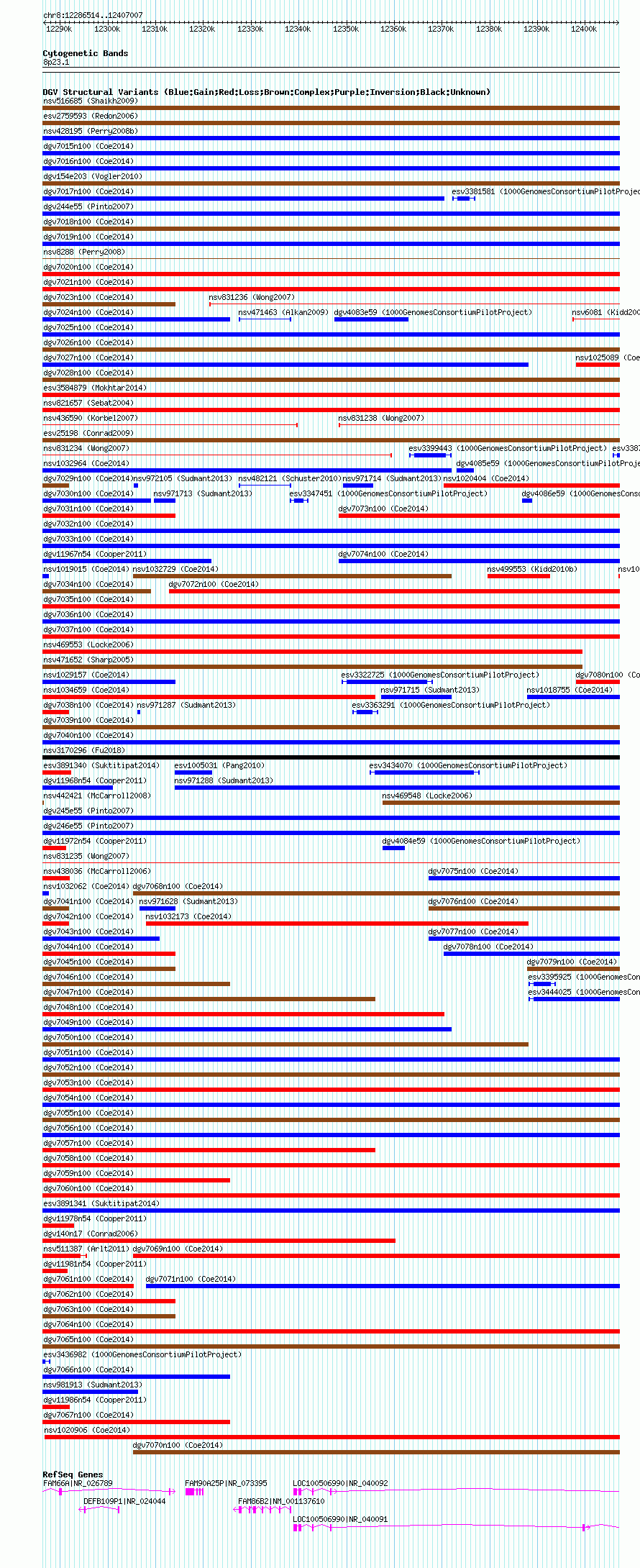 Variant DetailsVariant: nsv1020599| Internal ID | 19109818 | | Landmark | | | Location Information | | | Cytoband | 8p23.1 | | Allele length | | Assembly | Allele length | | hg38 | 120494 | | hg19 | 120494 | | hg18 | 120494 |