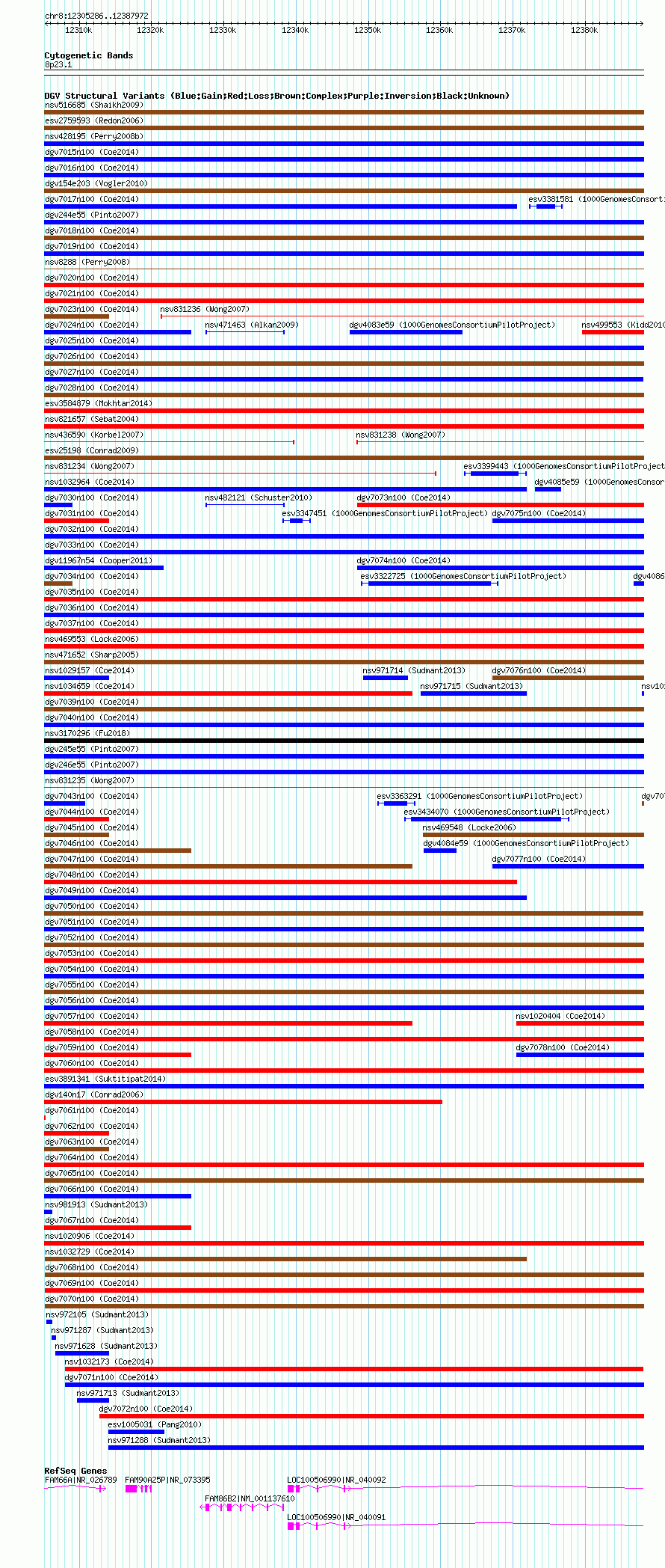 Variant DetailsVariant: nsv1020711 | Internal ID | 19109930 | | Landmark | | | Location Information | | | Cytoband | 8p23.1 | | Allele length | | Assembly | Allele length | | hg38 | 82687 | | hg19 | 82687 | | hg18 | 82687 |
