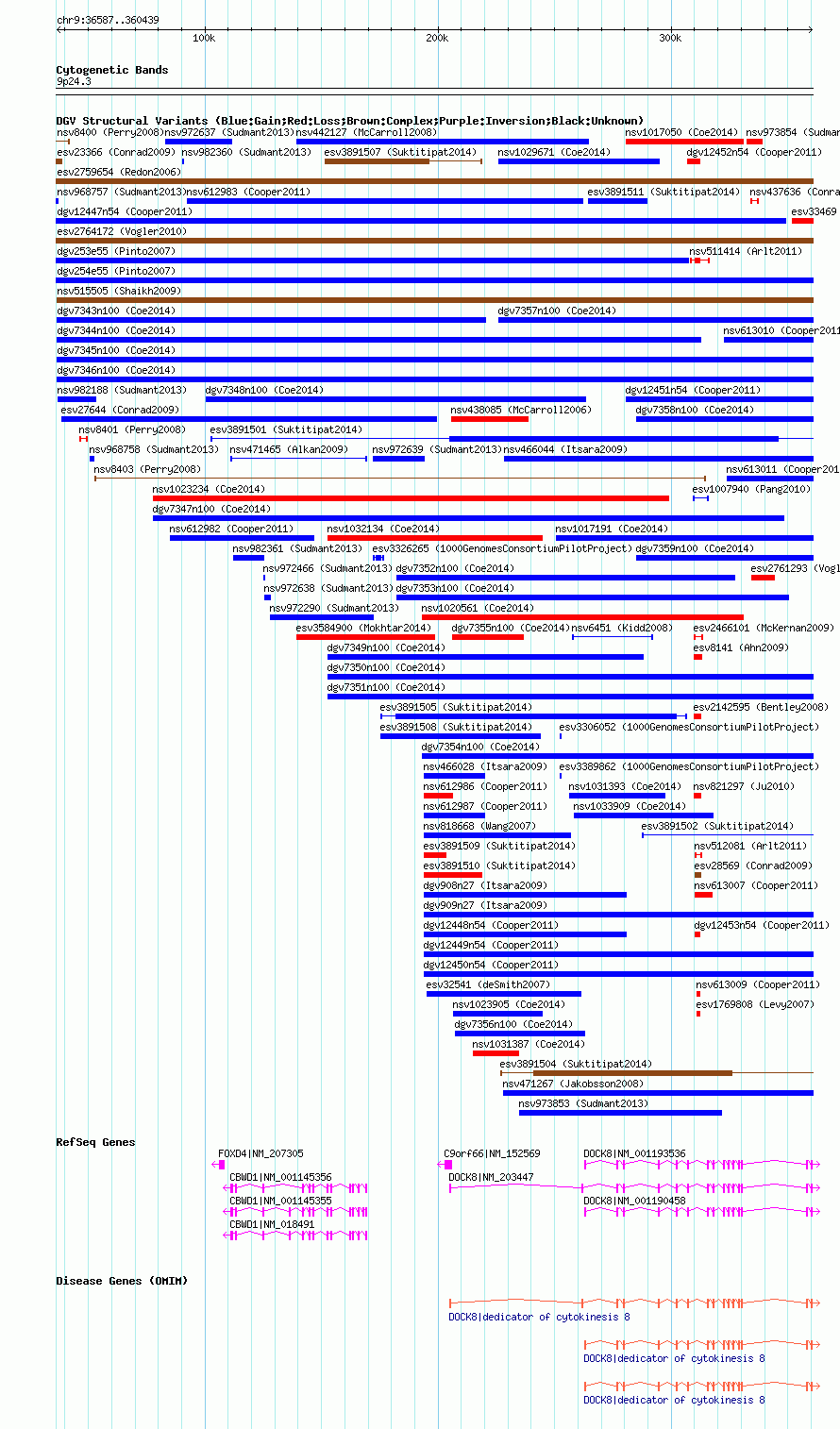 | Known Genes | C9orf66, CBWD1, DOCK8, FOXD4 |