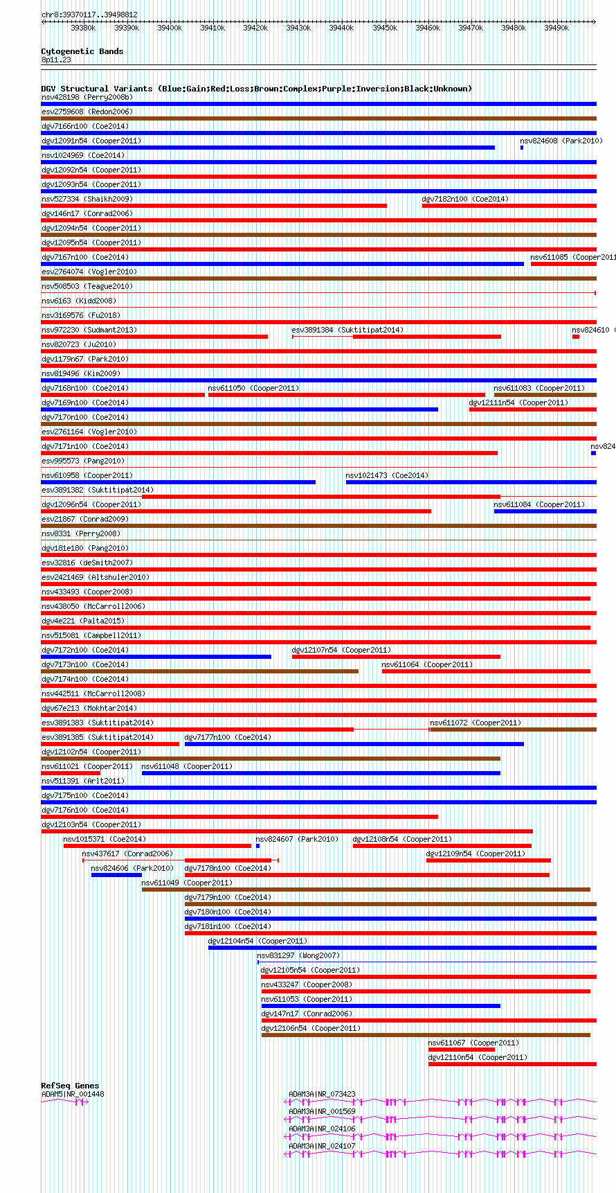 Variant DetailsVariant: nsv1021836| Internal ID | 19111054 | | Landmark | | | Location Information | | | Cytoband | 8p11.22 | | Allele length | | Assembly | Allele length | | hg38 | 128696 | | hg19 | 128696 | | hg18 | 128696 |