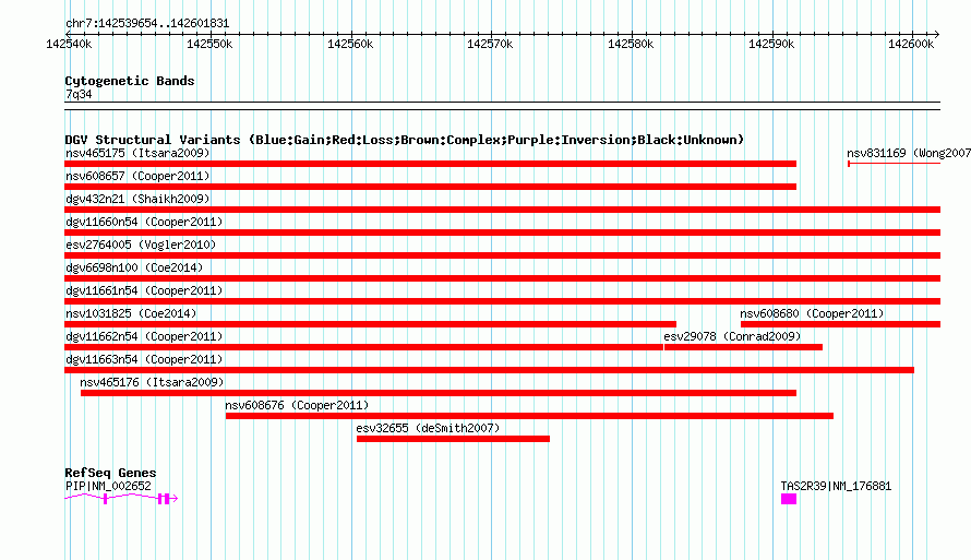 | | Variant Type | CNV loss | | Copy Number | | | Allele State | | | Allele Origin | | | Probe Count | | | Validation Flag | | | Merged Status | M | | Merged Variants | dgv6698n100 | | Supporting Variants | nssv3669645, nssv3669648, nssv3759979, nssv3669644, nssv3669646, nssv3669647 | | Samples | | | Known Genes | PIP, TAS2R39 | | Method | SNP array | | Analysis | Affymetrix SNP array copy number analysis | | Platform | Affymetrix SNP Array 6.0 | | Comments | | | Reference | Coe_et_al_2014 | | Pubmed ID | 25217958 | | Accession Number(s) | nsv1022193