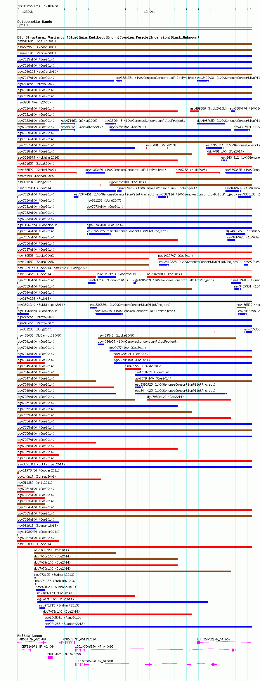 Variant DetailsVariant: nsv1022276| Internal ID | 19111494 | | Landmark | | | Location Information | | | Cytoband | 8p23.1 | | Allele length | | Assembly | Allele length | | hg38 | 191537 | | hg19 | 191537 | | hg18 | 191537 |