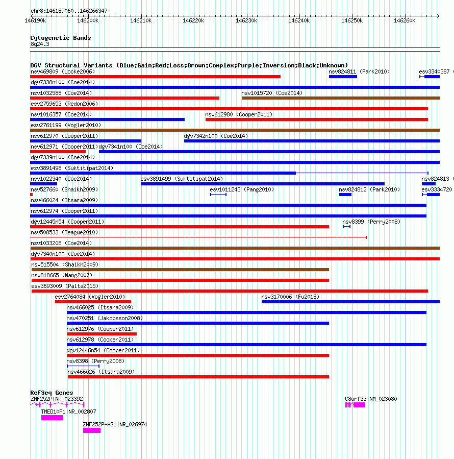 | Known Genes | C8orf33, TMED10P1, ZNF252P, ZNF252P-AS1 |