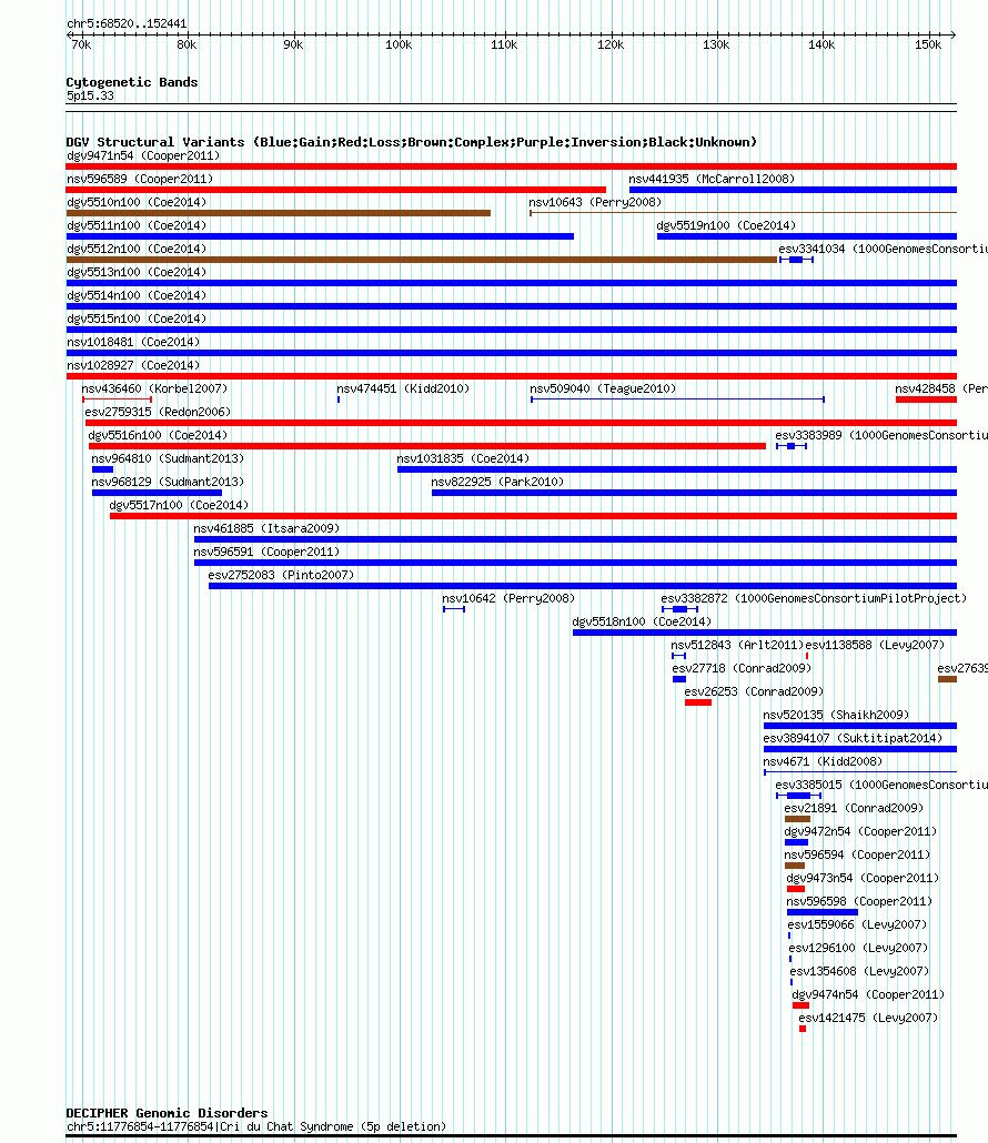 Variant DetailsVariant: nsv1022531| Internal ID | 19111749 | | Landmark | | | Location Information | | | Cytoband | 5p15.33 | | Allele length | | Assembly | Allele length | | hg38 | 83807 | | hg19 | 83922 | | hg18 | 83922 |