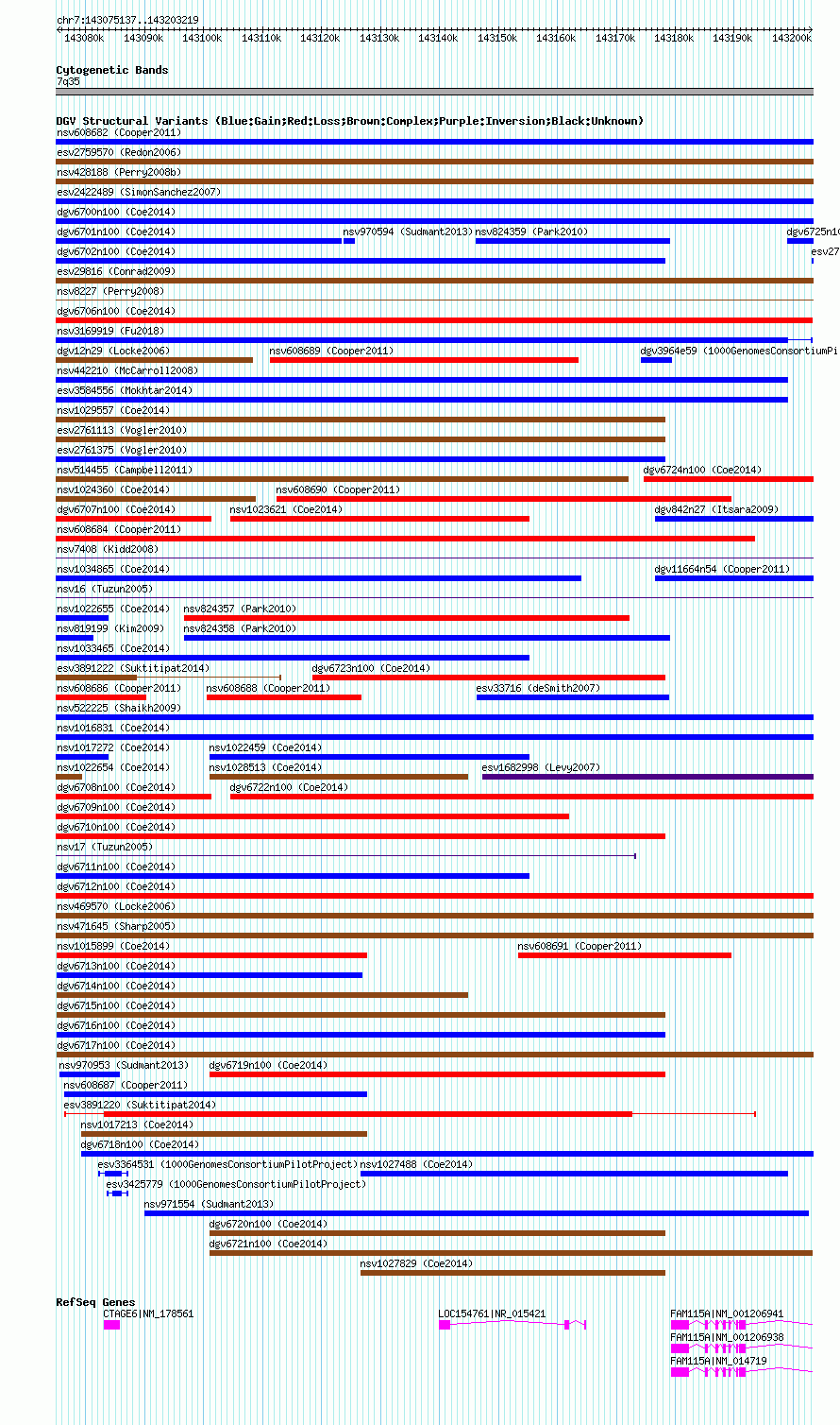 Variant DetailsVariant: nsv1022686| Internal ID | 19111904 | | Landmark | | | Location Information | | | Cytoband | 7q35 | | Allele length | | Assembly | Allele length | | hg38 | 128083 | | hg19 | 128083 | | hg18 | 128083 |
