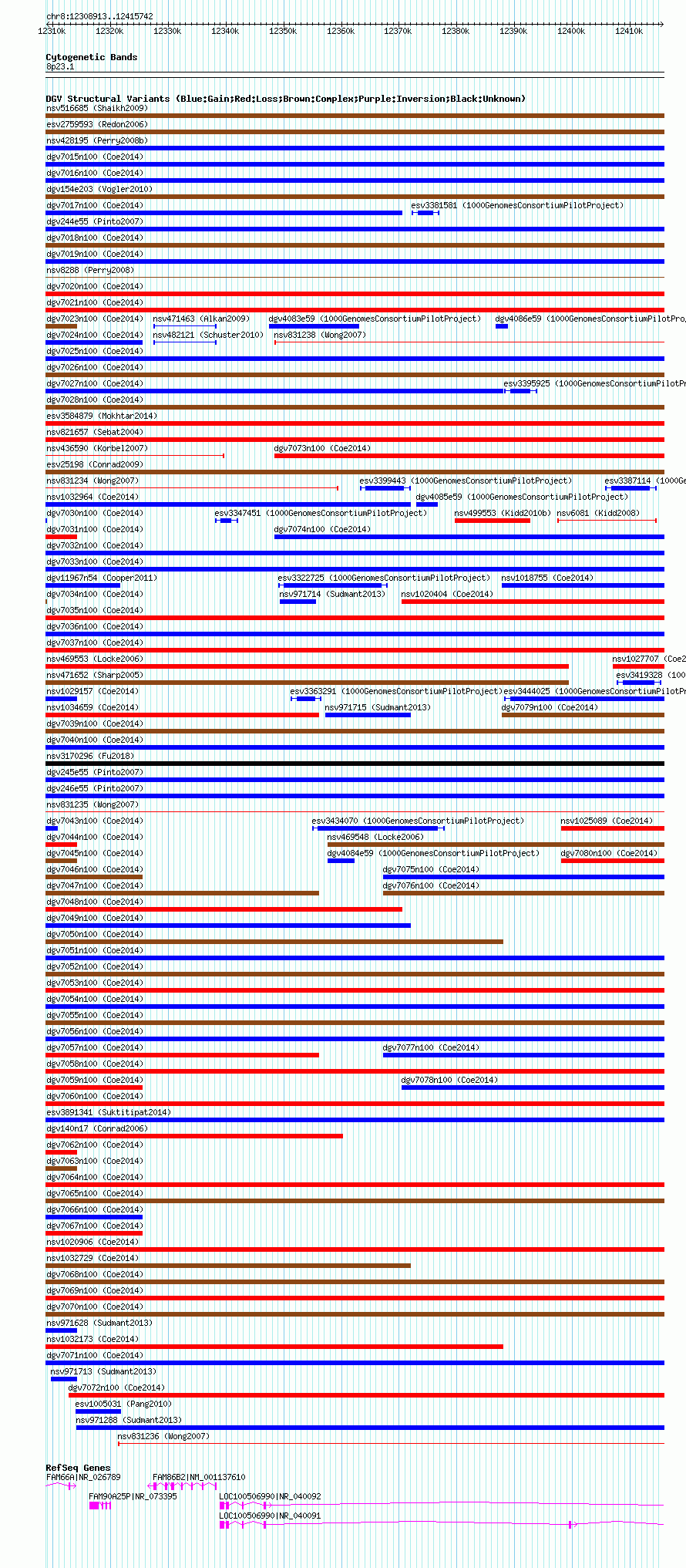 Variant DetailsVariant: nsv1022917| Internal ID | 19112134 | | Landmark | | | Location Information | | | Cytoband | 8p23.1 | | Allele length | | Assembly | Allele length | | hg38 | 106830 | | hg19 | 106830 | | hg18 | 106830 |