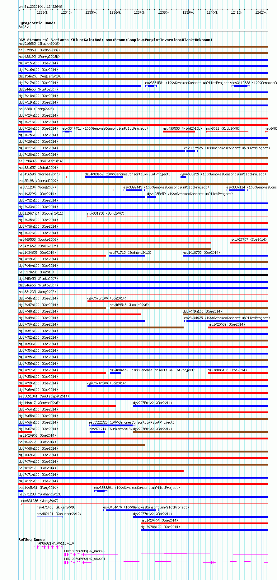 Variant DetailsVariant: nsv1023201| Internal ID | 19112418 | | Landmark | | | Location Information | | | Cytoband | 8p23.1 | | Allele length | | Assembly | Allele length | | hg38 | 102547 | | hg19 | 102547 | | hg18 | 102547 |