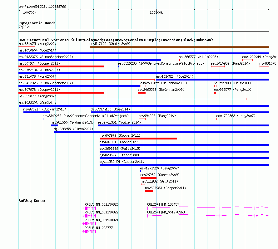 Variant DetailsVariant: nsv1023393| Internal ID | 19112610 | | Landmark | | | Location Information | | | Cytoband | 7q22.1 | | Allele length | | Assembly | Allele length | | hg38 | 197714 | | hg19 | 197714 | | hg18 | 197714 |