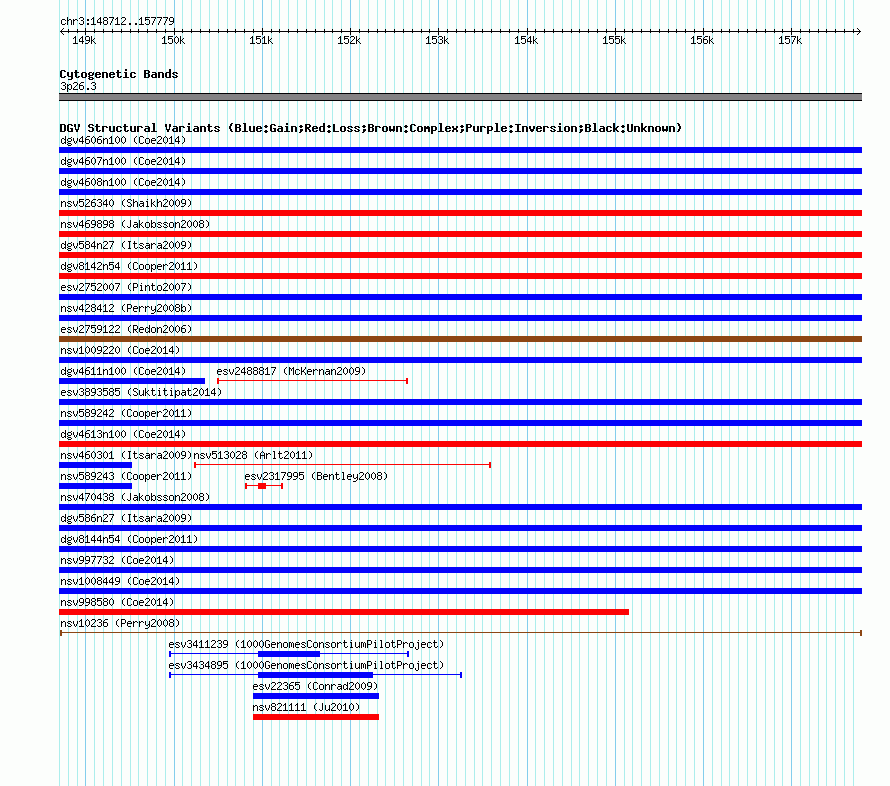 Variant DetailsVariant: nsv10236| Internal ID | 15498513 | | Landmark | | | Location Information | | | Cytoband | 3p26.3 | | Allele length | | Assembly | Allele length | | hg38 | 9068 | | hg19 | 9068 | | hg18 | 9068 | | hg17 | 9068 |