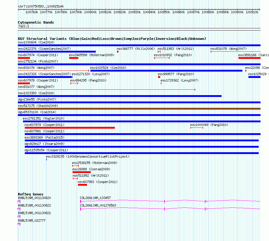 Variant DetailsVariant: nsv1024423| Internal ID | 19113640 | | Landmark | | | Location Information | | | Cytoband | 7q22.1 | | Allele length | | Assembly | Allele length | | hg38 | 164562 | | hg19 | 164562 | | hg18 | 164562 |