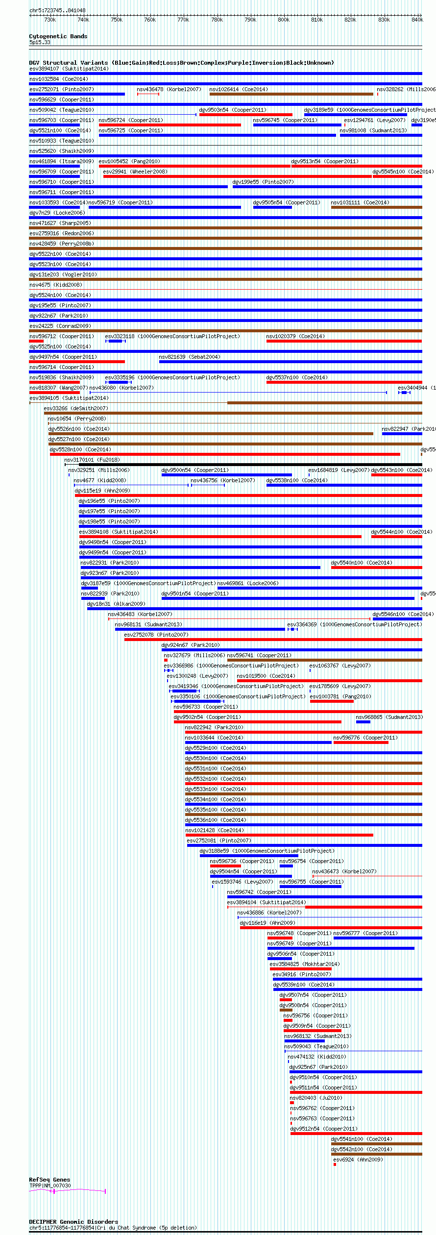 Variant DetailsVariant: nsv1024461| Internal ID | 19113678 | | Landmark | | | Location Information | | | Cytoband | 5p15.33 | | Allele length | | Assembly | Allele length | | hg38 | 117304 | | hg19 | 117304 | | hg18 | 117304 |