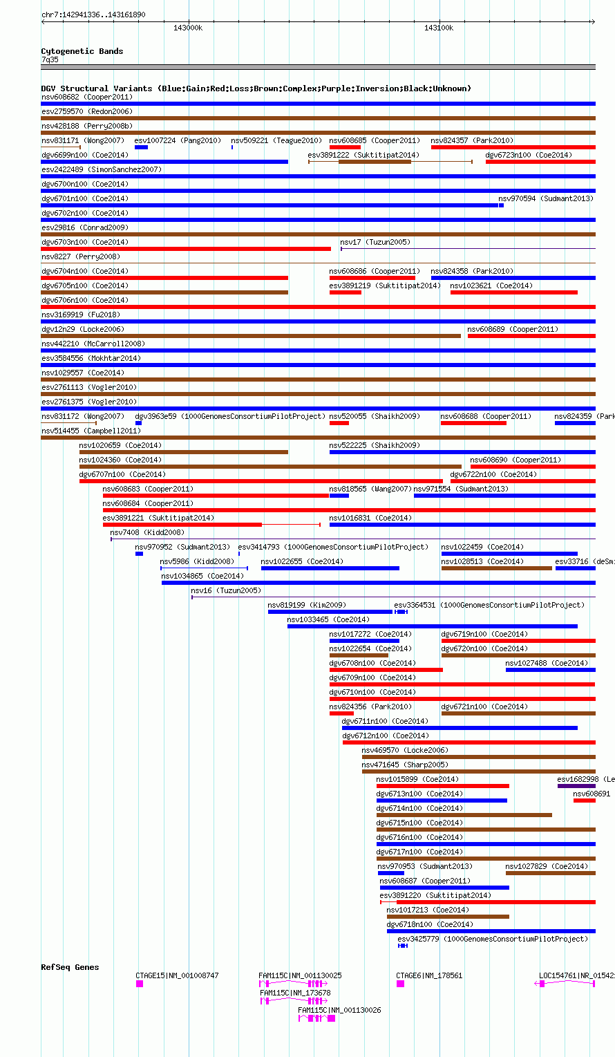 | | Variant Type | CNV gain | | Copy Number | | | Allele State | | | Allele Origin | | | Probe Count | | | Validation Flag | | | Merged Status | M | | Merged Variants | dgv6702n100 | | Supporting Variants | nssv3754747, nssv3670360 | | Samples | | | Known Genes | CTAGE15, CTAGE6, FAM115C, LOC154761 | | Method | SNP array | | Analysis | Affymetrix SNP array copy number analysis | | Platform | Affymetrix SNP Array 6.0 | | Comments | | | Reference | Coe_et_al_2014 | | Pubmed ID | 25217958 | | Accession Number(s) | nsv1024501