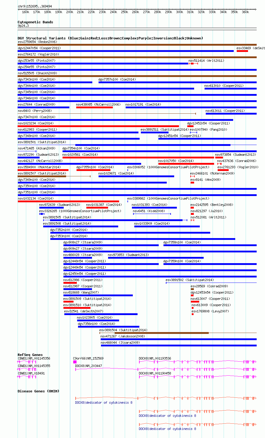 Variant DetailsVariant: nsv1025542| Internal ID | 19114760 | | Landmark | | | Location Information | | | Cytoband | 9p24.3 | | Allele length | | Assembly | Allele length | | hg38 | 216800 | | hg19 | 216800 | | hg18 | 216800 |