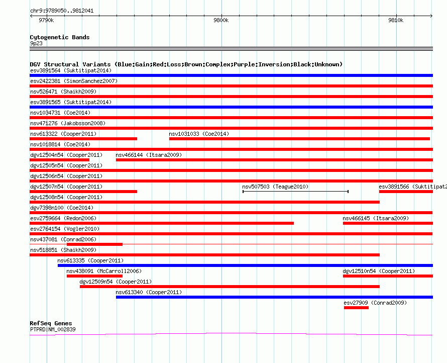 Variant DetailsVariant: nsv1025772| Internal ID | 19114989 | | Landmark | | | Location Information | | | Cytoband | 9p23 | | Allele length | | Assembly | Allele length | | hg38 | 22992 | | hg19 | 22992 | | hg18 | 22992 |