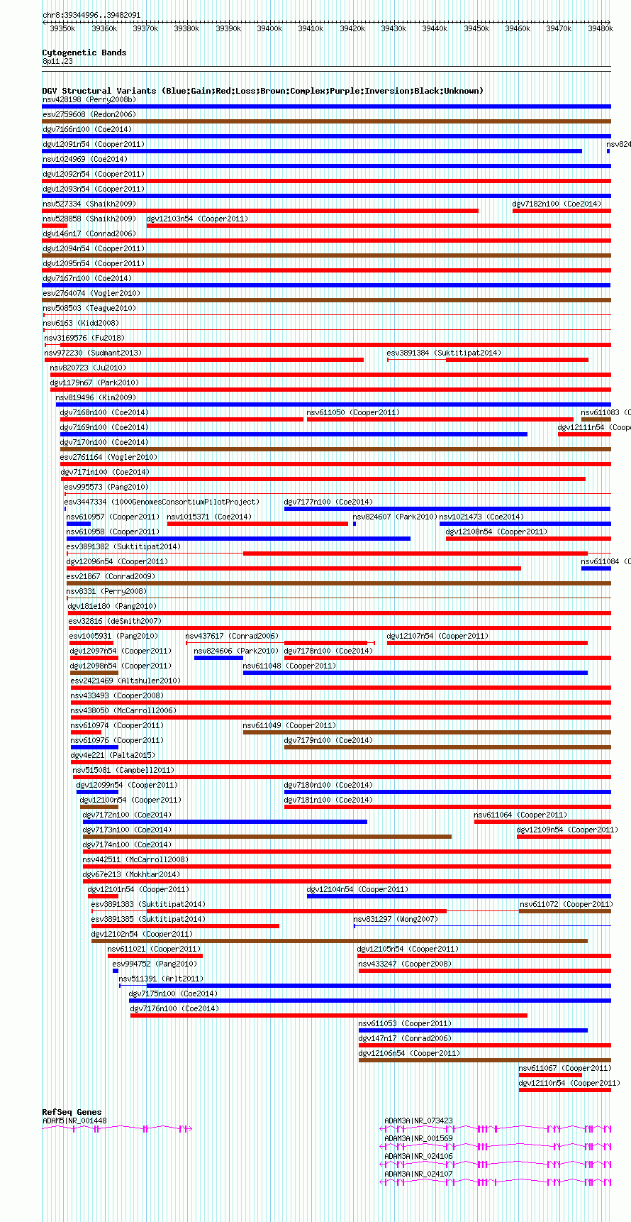 | | Variant Type | CNV gain | | Copy Number | | | Allele State | | | Allele Origin | | | Probe Count | | | Validation Flag | | | Merged Status | M | | Merged Variants | dgv7167n100 | | Supporting Variants | nssv3685625 | | Samples | | | Known Genes | ADAM3A, ADAM5 | | Method | SNP array | | Analysis | Affymetrix SNP array copy number analysis | | Platform | Affymetrix SNP Array 6.0 | | Comments | | | Reference | Coe_et_al_2014 | | Pubmed ID | 25217958 | | Accession Number(s) | nsv1025878