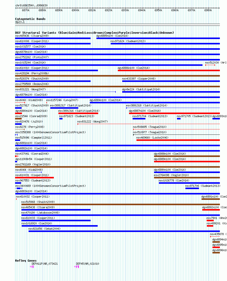 Variant DetailsVariant: nsv1025901| Internal ID | 19115118 | | Landmark | | | Location Information | | | Cytoband | 8p23.1 | | Allele length | | Assembly | Allele length | | hg38 | 123091 | | hg19 | 123091 | | hg18 | 123091 |