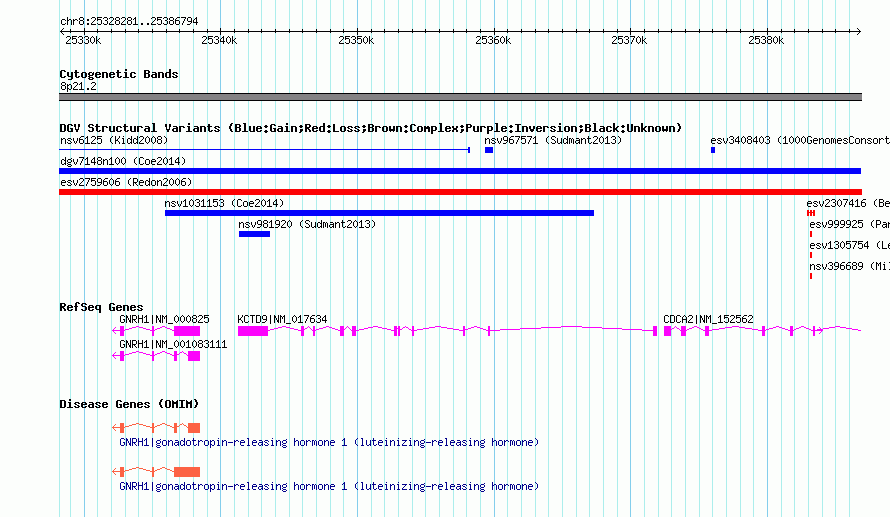 Variant DetailsVariant: nsv1026037| Internal ID | 19115254 | | Landmark | | | Location Information | | | Cytoband | 8p21.2 | | Allele length | | Assembly | Allele length | | hg38 | 58514 | | hg19 | 58514 | | hg18 | 58514 |